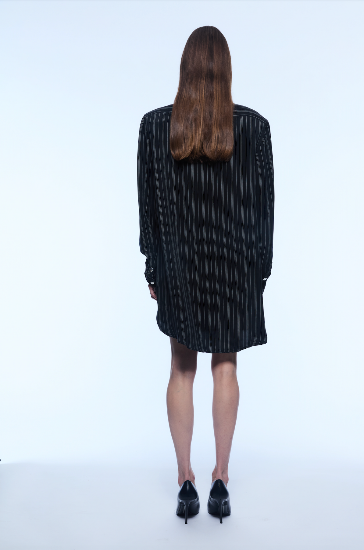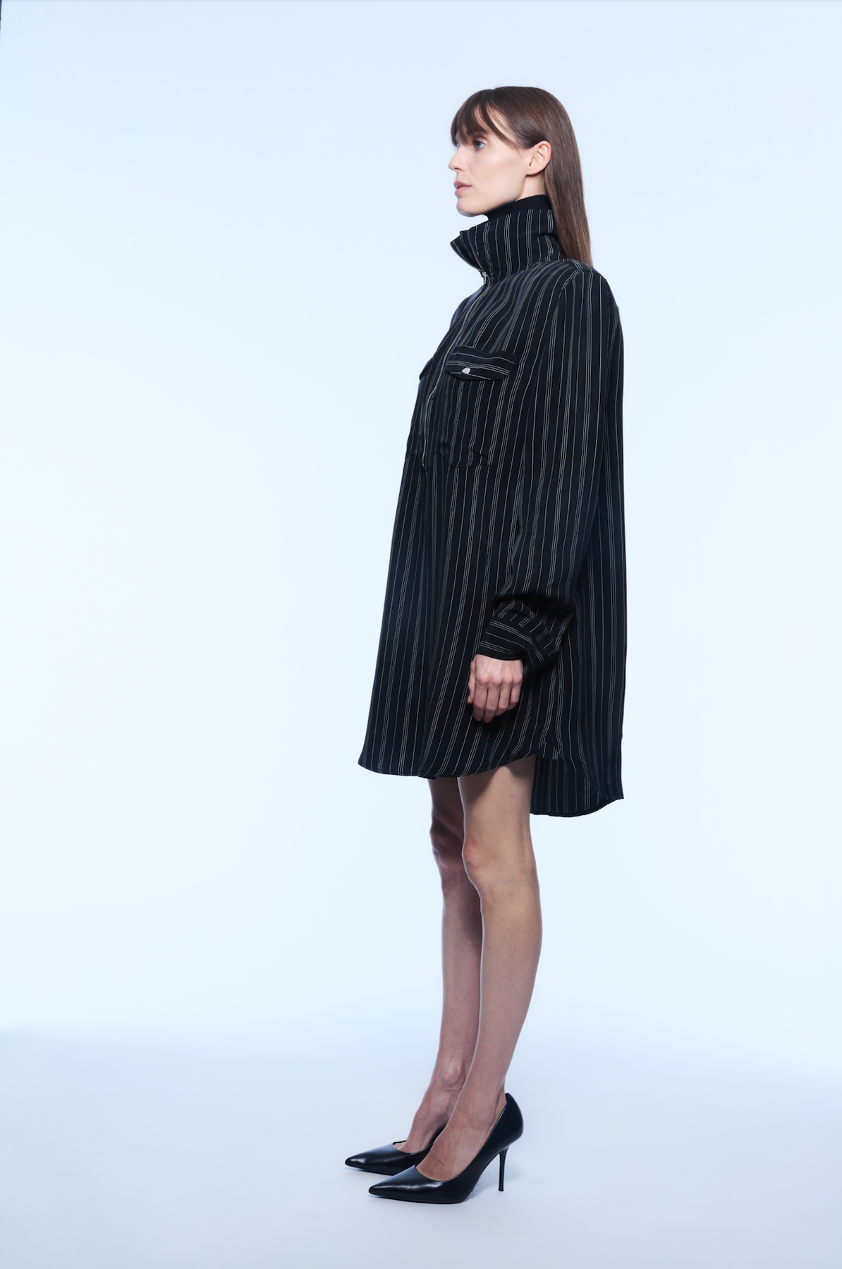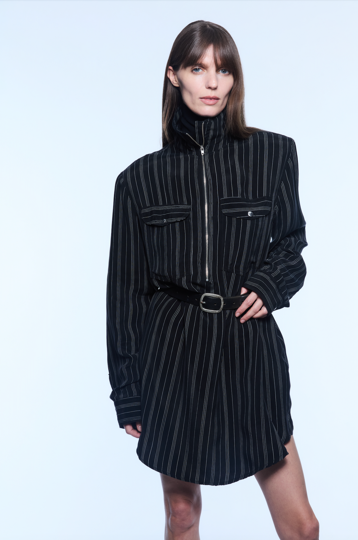 Striped midi dress with zipper detail.